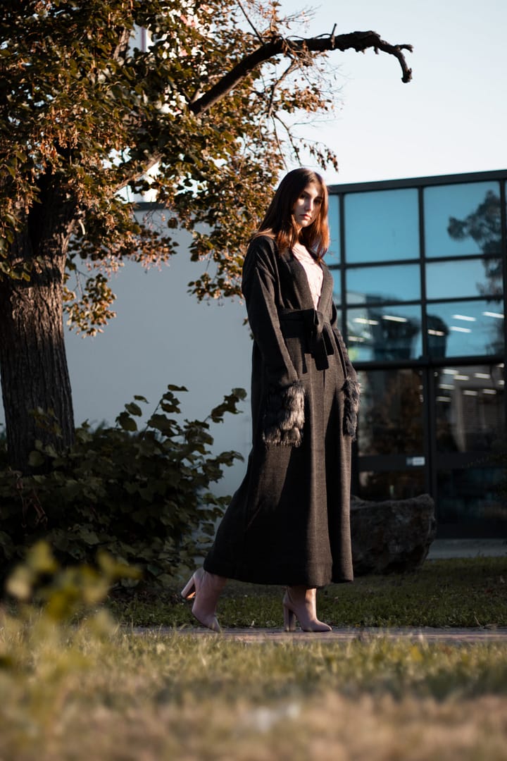 Dlouhý kardigan upletený z hebkého objemovaného polyakrylonitrilu, s vyšším stojákovým šálovým límcem, se zavazováním na pletený pásek. Kardigan získává na módním looku kapsami z umělé kožešiny se zajímavou flíčkovanou strukturou. Dodáván v krabici, která zabrání nevzhlednému pomačkání během expedice.